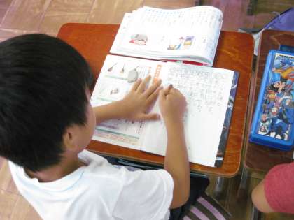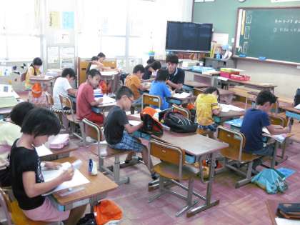2・3年生は,教室で自分の持ってきた課題をしたり,プリントをしたりして自学自習を集中してしました。
