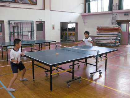 今日,初めて卓球をした子もいました。平野先生とマントゥマンで楽しみました。はじめは,ピン球を打つ強さがわからないので,なかなかうまく相手のコートに玉を返せませんでしたが,徐々に慣れてきました。