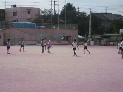 グランドでは,もう一組頑張っているグループがありました。それは,部活のサッカー部です。蒸し暑い中ですが,基本練習から試合形式の練習を楽しそうにプレイをしていました。