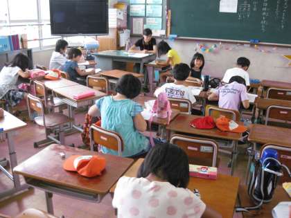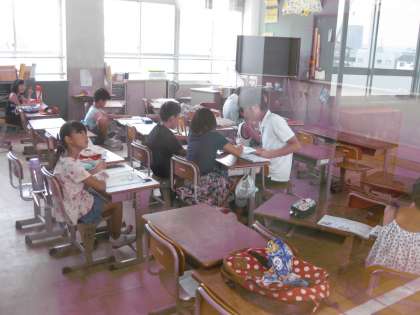 サマースクールの3年生の様子です。わかりにくいところは,先生に質問して課題をやり遂げようとしています。頑張ってください。