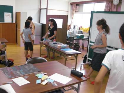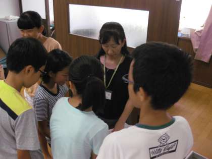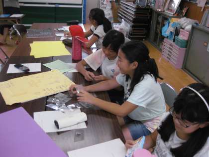 ふれあいサロンでは,学校で実施されるサマーキャンプに参加する6年生のリーダー達が集まって,これから準備を始めます。部活などで,まだ全員集まっていないので,準備の準備段階です。