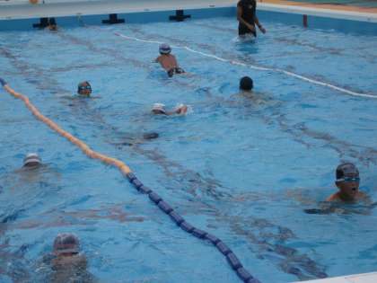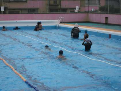 プールでは,高学年の子どもたちが自分たちの課題にあわせて水泳学習に取り組んでいます。9時30分からは,メダカ教室がありました。また,6年生は「水泳記録会」に向けての練習に取り組んでいました。