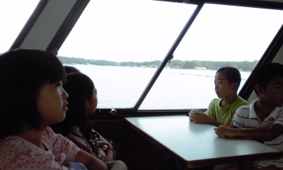 船でなかよし港へ向かいます