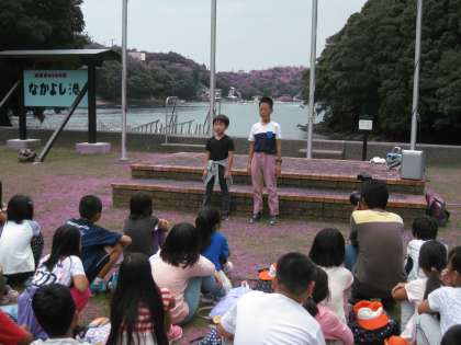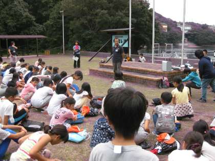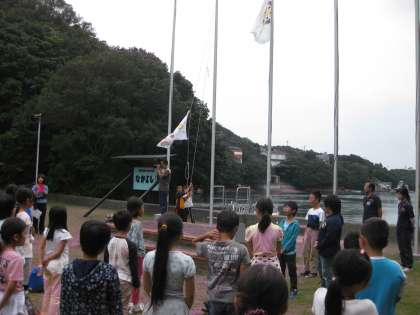 まず、なかよしみなとの芝生広場で入所式です。校歌をうたい、学年旗をあげて気持ちの準備も整いました。司会の子も誓いの言葉をしっかりと言えたので大変素晴らしかったです。