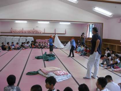 まず、所員の方から、岬の家での基本的な過ごし方を聞きました。そして、大切な寝具の準備方法を習いました。