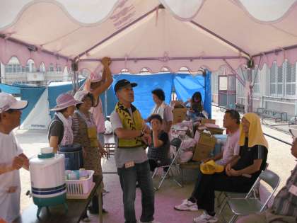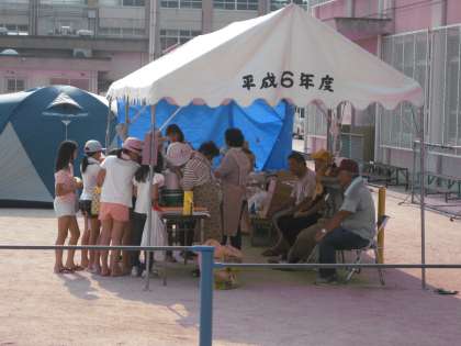 運動場には,主にスタッフが使うキャンピング・テントと本部テントが設営されています。