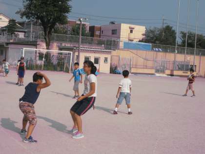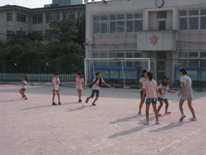 グループ対抗のしっぽとりゲームが始まりました。トーナメント戦だけに1回負ければ優勝はなくなるので,必死になってゲームを楽しんでいます。