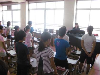 音楽の授業です。まず,口を大きく開けることが大切ですね。6年生にもなると,ちょっと恥ずかしさもあり,なかなか大きな口を開けて歌えません。先生から「あくびをするぐらい大きな口で!」と声かけがありました。