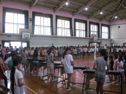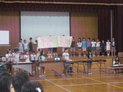 今日も,いつものように音楽委員会の伴奏で全校合唱から始まりました。