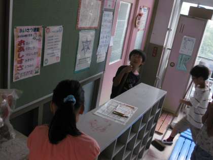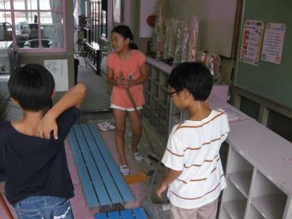 掃除時間です。どこの分担の子どもたちもよく頑張っています。まなび教室前の当番の子どもたちは,今日はロッカーやスノコをどけて掃除を頑張りました。ロッカーの裏にたまったゴミがあまりにも多いので驚いていました。