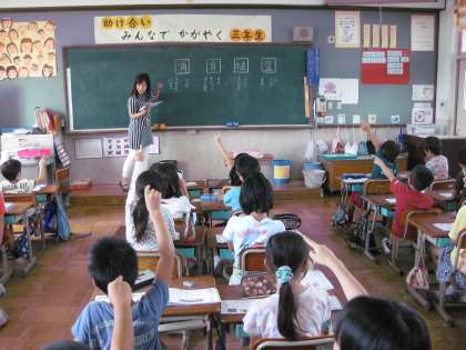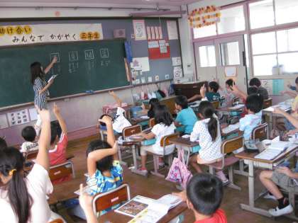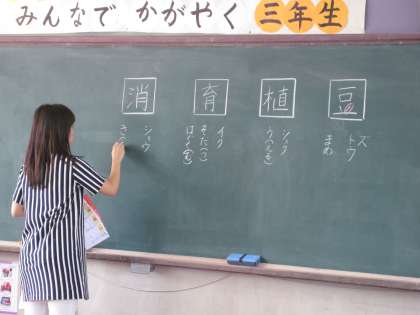 これから習う国語の単元で,新しく出てくる漢字を練習しています。音読み・訓読み,そして使い方。最後には,手を出して書き順をみんなと一緒に確認していました。