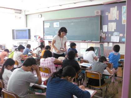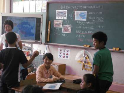 黒板にカツオの絵が貼ってまります。5年生は,水産業の学習です。日本は,水産業がさかんで,また,水産物を多く消費する国です。我が国の重要な産業の一つである水産業の現状と課題とこれからを,多方面から考えていきます。