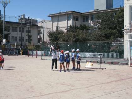 晴天の下,4年生は運動場でパスゲームをしていました。どこに動けばパスがもらえるか,考えながら運動をしています。一生懸命に運動をしている姿も大変素晴らしいのですが,『場』の設定を自分たち主体でどんどん進められたことです。
