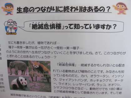 今月号の理科通は,生命のつながりがテーマのようです。人間が絶滅危惧種にならないようにするためには,どうしたらいいのでしょうね?