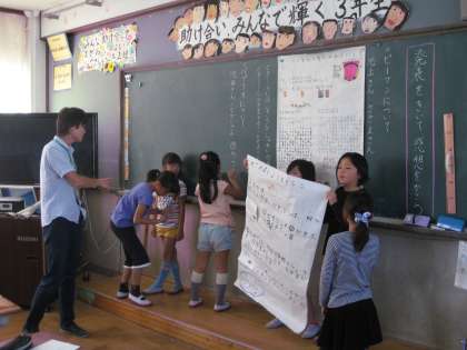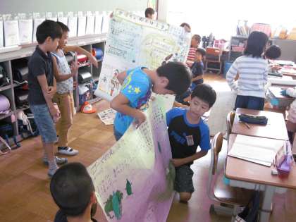 今日は,それを発表する準備のようです。役割を決めて読む練習をしていました。うまく発表できればいいですね。