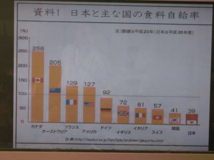 5年生は,日本の食糧自給率の低いことに驚き,いったいこれからどうしていったらいいのか話し合いました。国や都道府県の取組の資料をみて,分かったことを話し合いました。