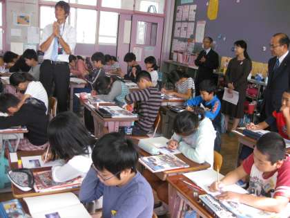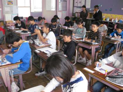 情報交換をした後,6年生の授業を見ていただきました。本校の6年生の学習する姿に感心されていました。情報交換をしたことを,今後も子どもたちの学力向上のために活かしていきたいと考えています。