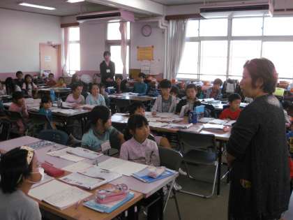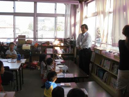 教育委員会から岸本先生においでいただき,子どもたちにメッセージをいただきました。