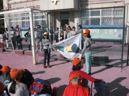 まず、出発式です。一つ一つの言葉をかみしめながら、しっかりと話すことができました。