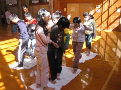 これから3泊4日の活動を、みんなで仲良く協力しながらできるように、絆を強める仲間づくりのゲームです。あちこちから、笑い声が聞こえてきました。