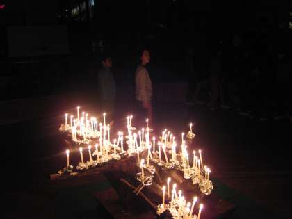 暗闇の中にろうそくの炎が浮かび上がり、幻想的な雰囲気の中で誓いの言葉が述べられました。