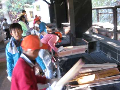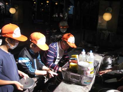 同時に、具材を切る係りの子供たちも準備開始です。いつもと違う真剣な表情です。