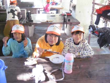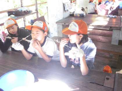 さばいた魚を炭火で焼きます。全員とても上手に焼けました。とっても美味しいので、頭からしっぽまで全部食べてしまった子もいます。