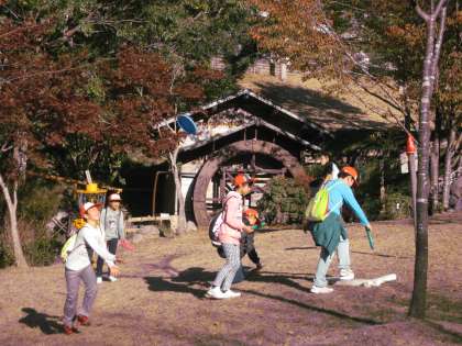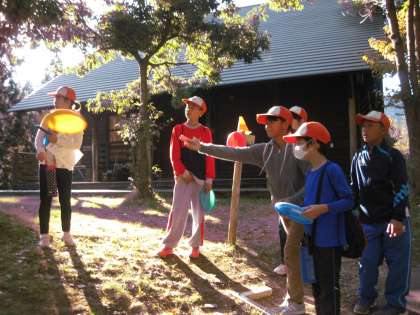 午後からは、フライングディスクゴルフとボルタリングです。フライングディスクゴルフは、晩秋の山の家風景を満喫しながらコースを回りました。