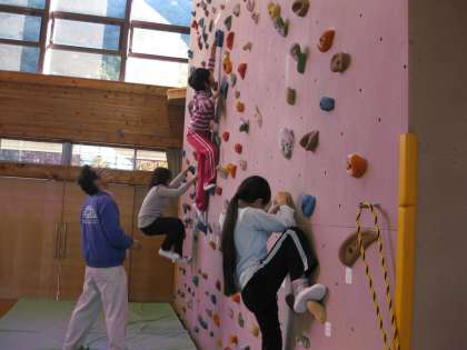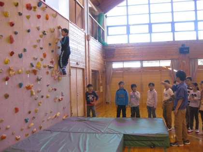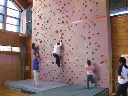 プレイホールでは、ボルダリングに取り組んでいます。結構難しいですが、何とか目標の高さまでたどり着こうと努力しています。
