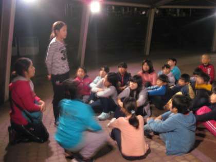 いよいよ長期宿泊のメインイベント『キャンプ・ファイア』です。レクレーションの子供たちのリハーサルも終わり、意気込みを発表しています。