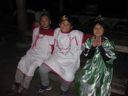 ファイアの点火は,今回は弓で火矢をはなちます。その重要な役割を担った子は緊張しています。さて、うまくいったのでしょうか・・・?