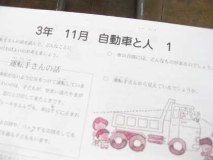 「車は急に止まらないから・・・」と3年生の教室で子どもが発表しています。車は急に止まらないから,自分はどうしたらいいのかを発表しているようでした。