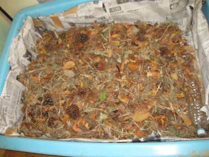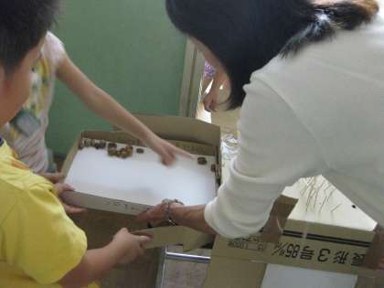 1年生の教室の中,そして廊下には,今,秋がいっぱいです。拾って集めてきた木の実や落ち葉,そして松ぼっくりがいっぱいです。