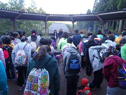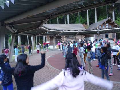 三日目の朝のつどいです。肌寒かったですが,子どもたちはぐっすり眠ったようで元気でした。
