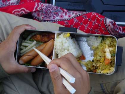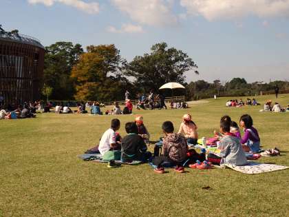 鞍ヶ池公園で休憩です。お弁当をおいしくいただきました。
