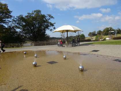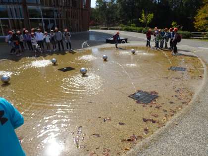 食事の後は,休憩です。噴水に興味津々のようでした。