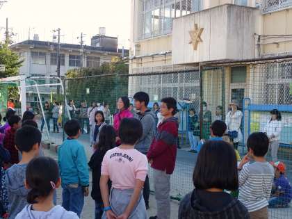 学校に到着しました。子どもたちは,最後まで堂々としていました。