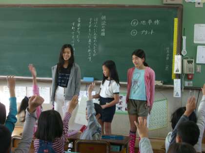 先週の月曜日に児童朝会で,保健安全委員会から「自分でできるけがの手当て」について発表をしました。今日は1年生と2年生の教室に,「すりきず」「きりきず」「やけど」「だぼく」の自分でできる手当てを紹介しに行きました。1年生や2年生にわかるように工夫して作ったクイズをがんばって発表しました。