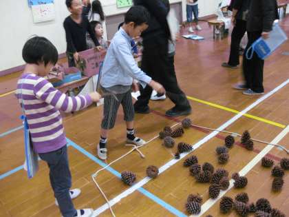 それぞれのブースで実際に遊んでみて,そのゲームや遊びが幼稚園の子にとって「わかりやすい」「かんたん」「たのしい」か,という観点で体験していきます。