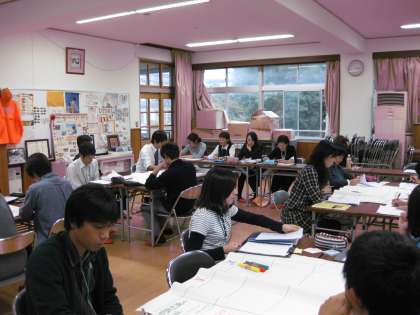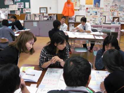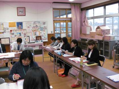 これらの子どもたちの活動を振り返って,授業の事後研修会をしました。指導・助言に前 京都市小学校生活・総合学習研究会の会長 田中 千草先生においでいただき,たくさんのことを教えていただきました。