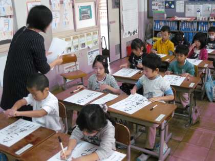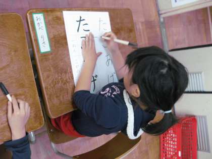 1年生は,太いネームペンで気持ちを引き締めて書いていました。いい字を書こうと思えば心を落ち着けることも大切ですね。
