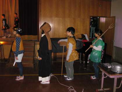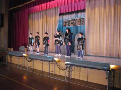 体育館で本格的に練習しているのは5年生です。もう少し歌を大きな声で歌えるように練習中です。