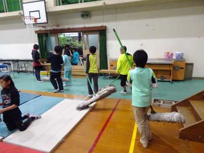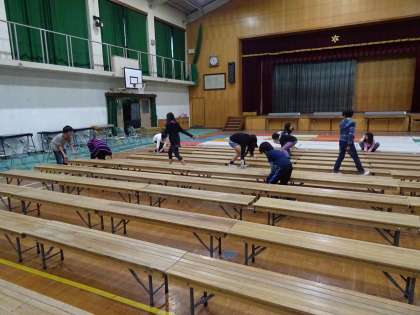 5年生と教職員で前日準備を行いました。協力して,素早く終えることができました。