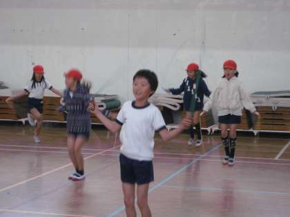 2年生は,体育館で縄跳びに挑戦していました。「見て!見て!今日は新記録!!」と喜ぶ子どもたち。