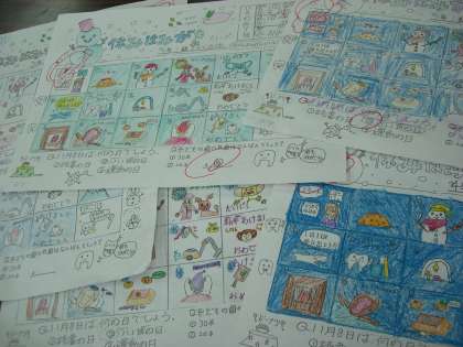 新しい年が始まりました。冬休みの後も元気に登校してきてくれるお友達にたくさん会って、とてもうれしい気持ちになりました。そして,今日から保健安全委員のみんなが活動を再開しました。冬休み前に委員会で作った「はみがきカレンダー」にとてもきれいに色がぬってあり,保健安全委員のみんなもとてもうれしい気持ちになりました。あと3カ月ですが,伏見板橋小学校のみんなの元気のために,しっかり活動しますね♪