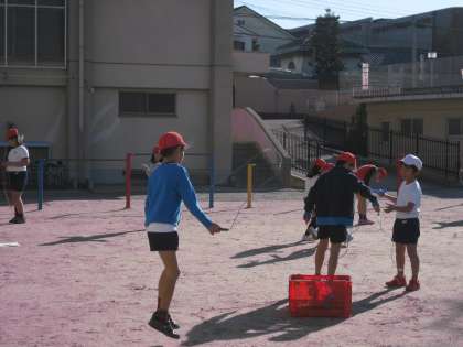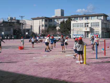 今日は,北西からとても冷たい風が吹き,時々雪も降ってきました。そんな中ですが,子どもたちはとっても元気です。3年生は,黙々と縄跳びの技に挑戦していました。