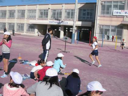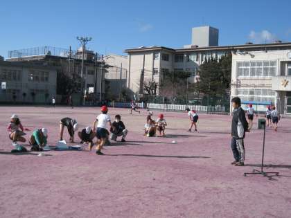 5年生は,持久走の練習でしょうか・・・黙々とトラックをランニングしています。ペアーを組んでいるのでしょう。「○○さん後2週やで!頑張れー!」「ラスト!ラスト!」と友達を励ます声が聞こえてきました。