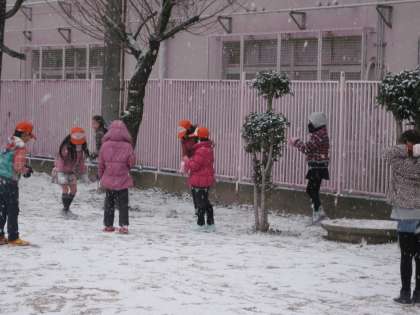 とっても寒いのですが,子どもたちはとても元気です。積もった雪は,わずかですが楽しく遊びました。