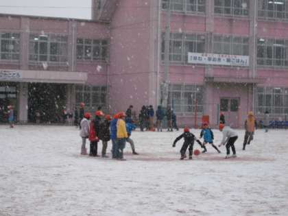 こんな日,私が子どもの頃は,母親に靴下のかえを持たされたものです。このあたりは,京都市北部とは違い,積雪があまりないので,子どもたちの雪に対する備えが少し甘いかなとも思いました。でも,そんなことはお構いなく,十分に楽しめることができました。