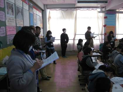 研究発表会の指導助言には,前校長の山下先生をはじめ,京都市教育委員会から,総合育成支援課の和久田専門主事,総合教育センター指導室から 林 指導主事,鈴木指導主事においでいただき,ご指導・ご助言をいただきました。誠にありがとうございました。